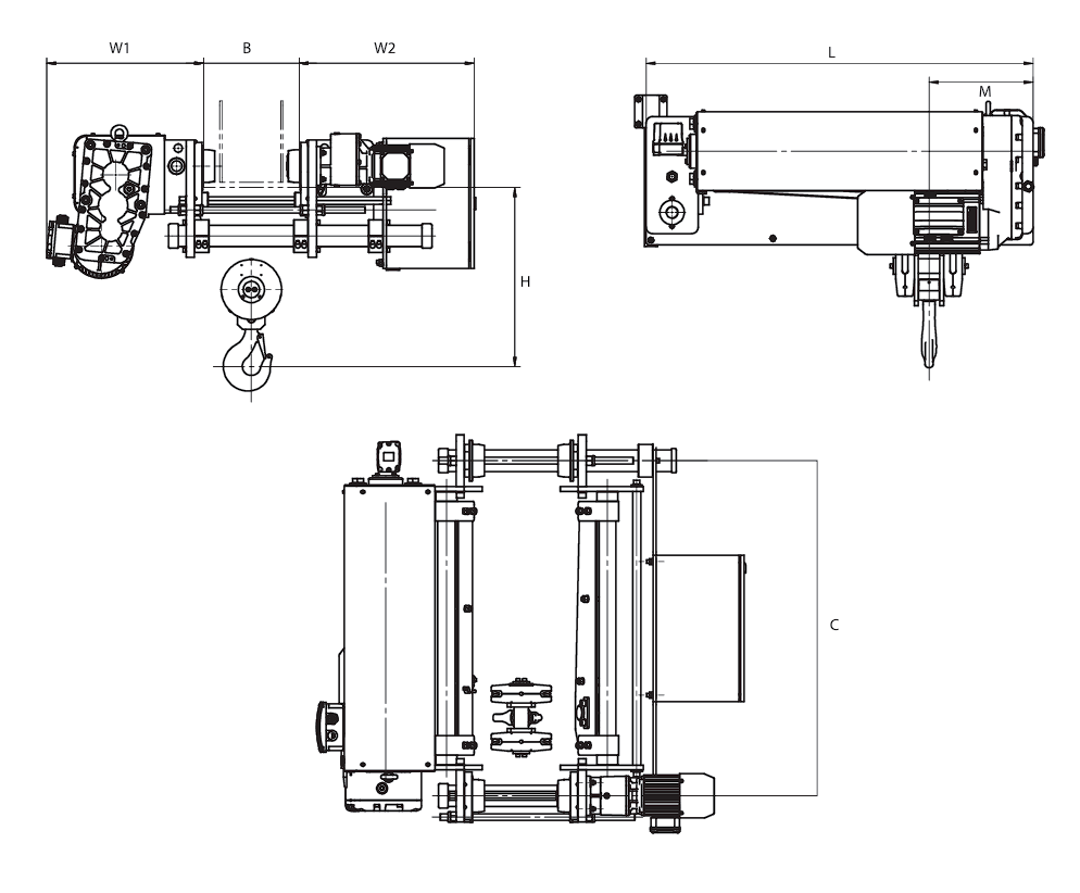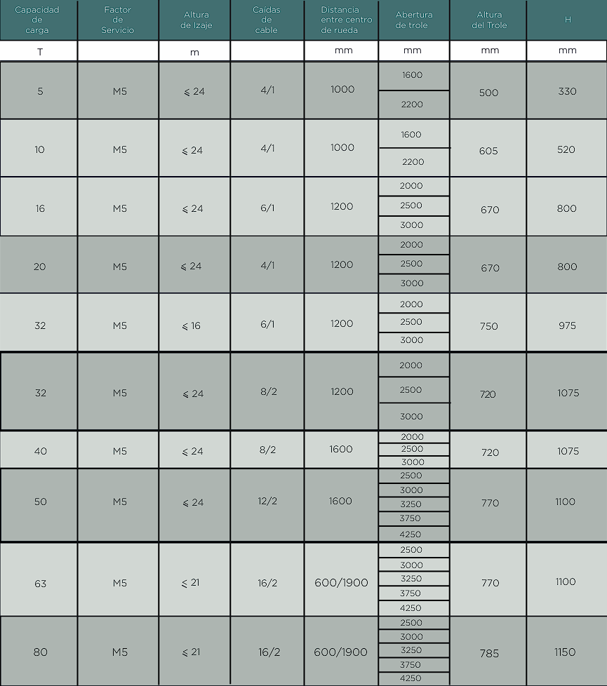 Especificaciones Polipasto Eléctrico de cable de acero tipo europeo, BIRRIEL. WhCranesAmerica