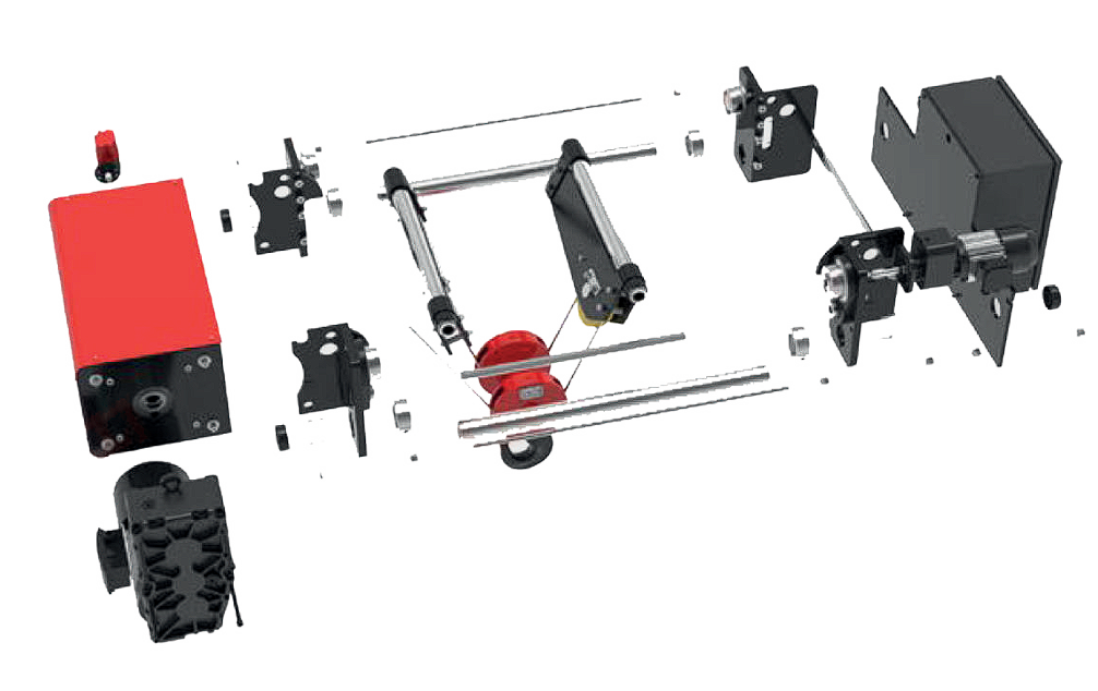 Componentes eléctricos, cojinetes y controlador colgante
