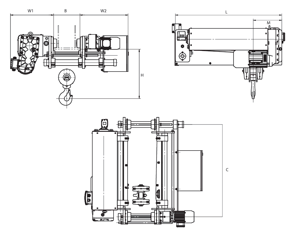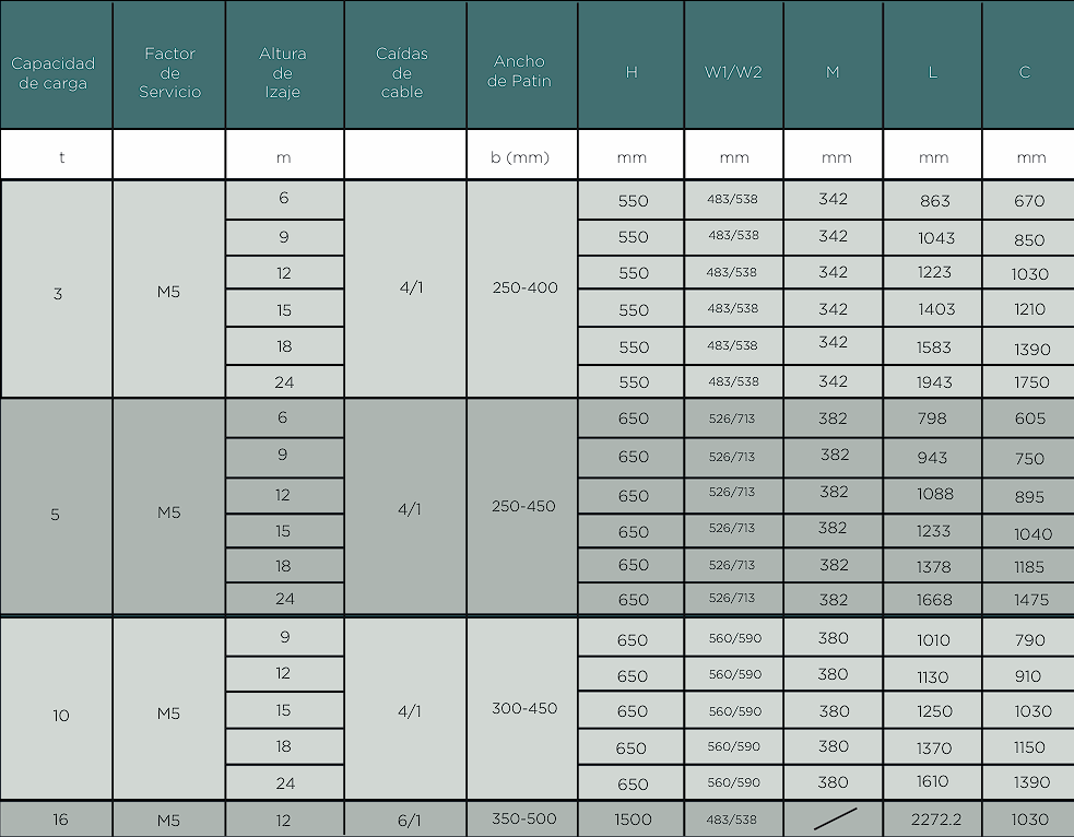 Especificaciones Polipasto Eléctrico de cable de acero tipo europeo, MONORRIEL. WhCranesAmerica